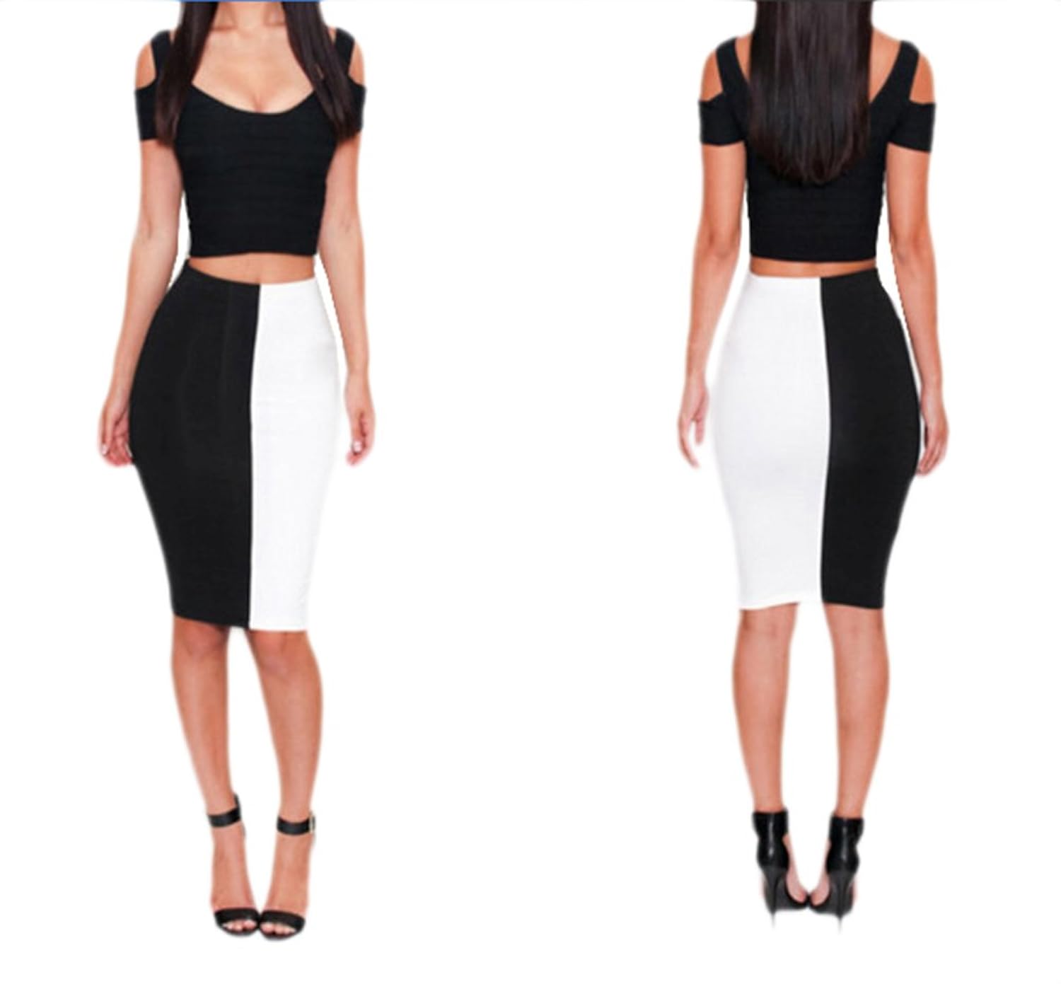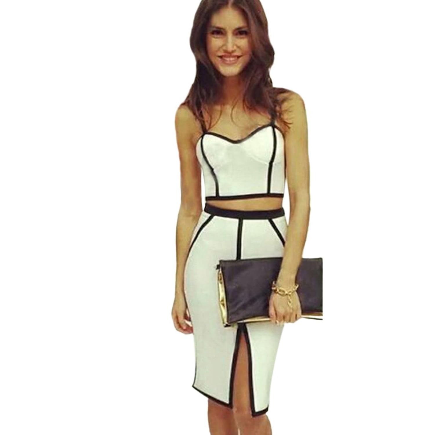 Women's 2 Piece Crop Top & Bodycon SkirtSpaghetti Straps Crop Top & Midi Skirt Set