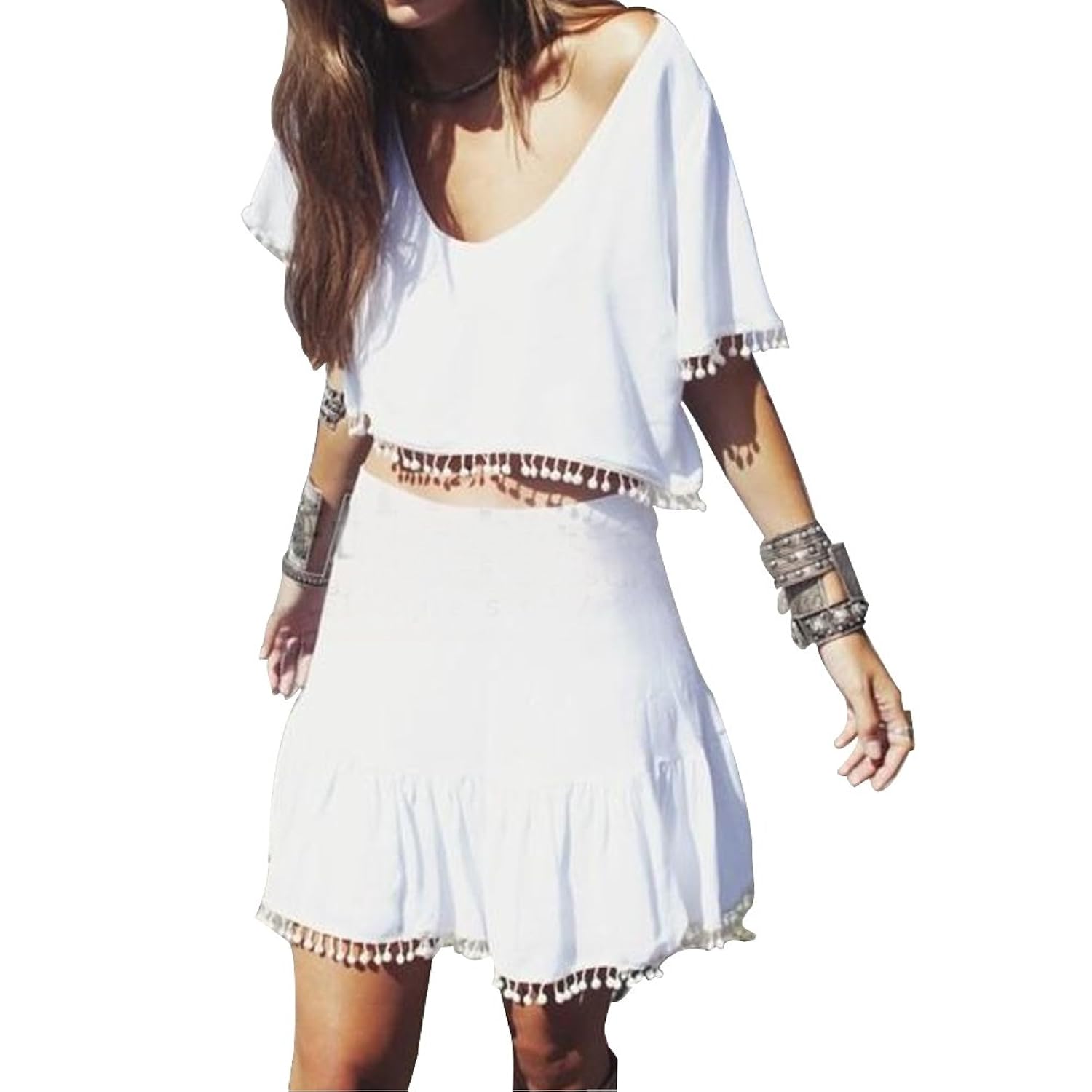 Women Loose Two-piece Top and Skirt Set